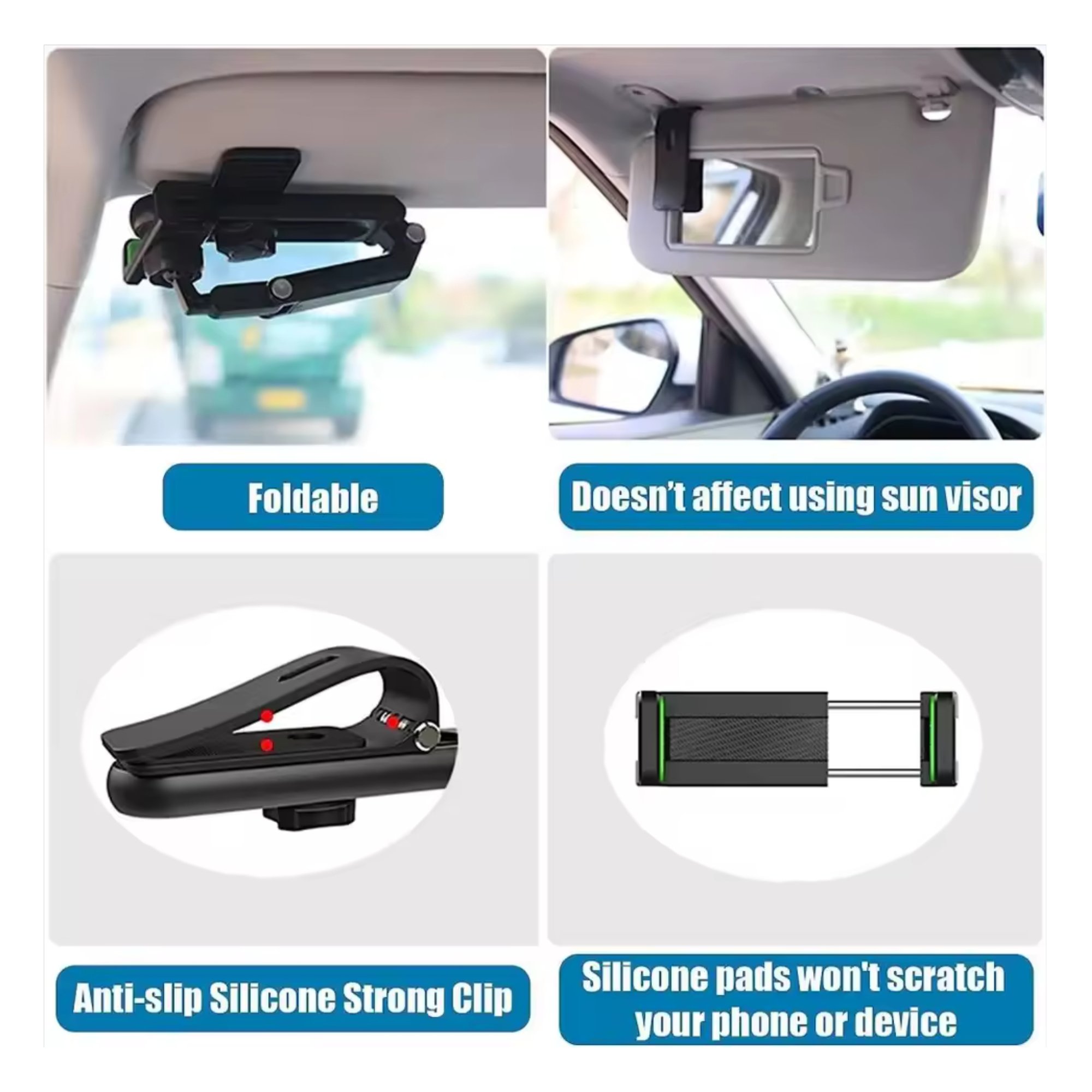 Sun Visor Phone Holder for Car Multifunctional 360° Rotating Sun Visor Cell Phone Holder with IPhone/Samsung/Android